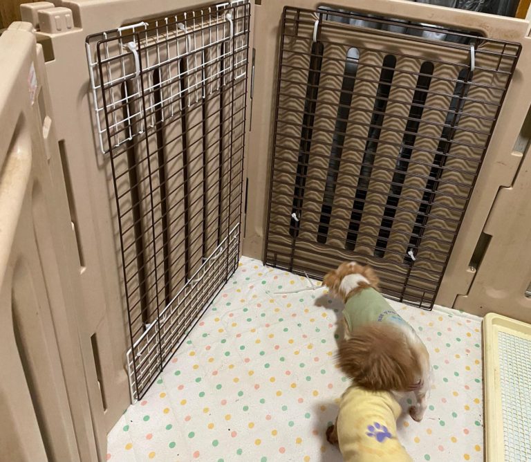 家の中で運動できるように^o^スペースを広げました。人の後をついてくるので、それが^o^またまた可愛 […] -
