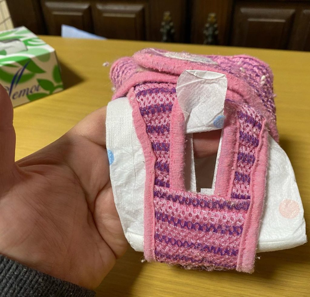 早速、大型犬用のオムツを装着して、1週間くらいして、私が会ったのですが、オムツの穴を広げず、ウンチは、オムツの中にしていました。