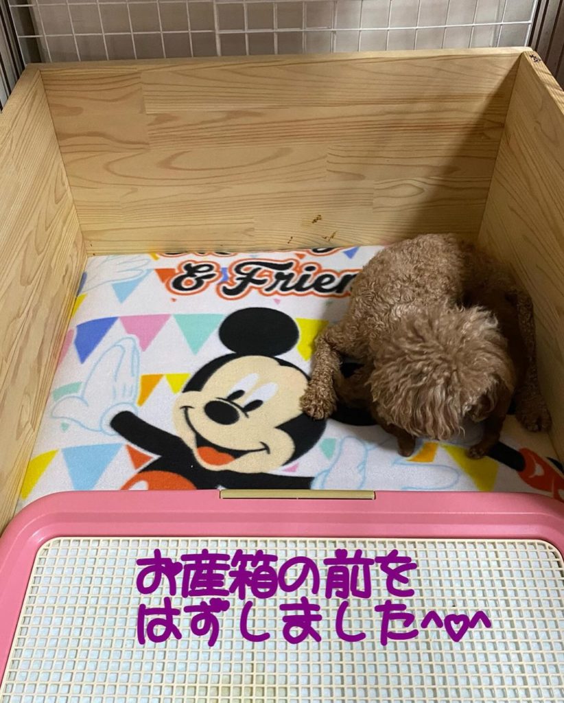 お産箱の前も外し、おトイレに行けるようにします。