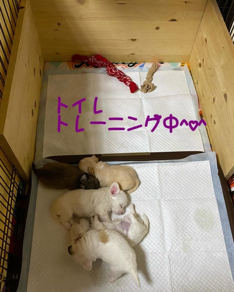 我が家のママワン達は、子育てが上手で、おトイレも、お鼻でお尻を押して、おトイレに誘導します。
