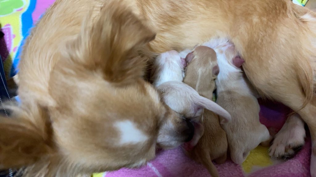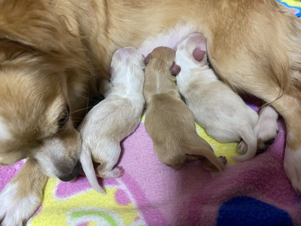 新しい家族が決まりました!ロングコートチワワ(鈴蘭×ホープ) 投稿日 2020年10月11日 更新日 2020年10月24日 著者 スーパーブギフトケンネル カテゴリー ロングコートチワワ カテゴリー わんこ情報 カテゴリー 子犬情報 パパ → ホープ ママ → 鈴蘭 男の子 → フォーン&ホワイト1頭女の子 → クリーム&ホワイト2頭 今回の赤ちゃん達の頭の形、お鼻のつまり角度が、チワワの教科書に載る位に生まれた時から整っている赤ちゃん達です。ぜひ写真をクリックして大きくして見てくださいね♪ 生まれたばかりの写真生まれたばかりの写真
