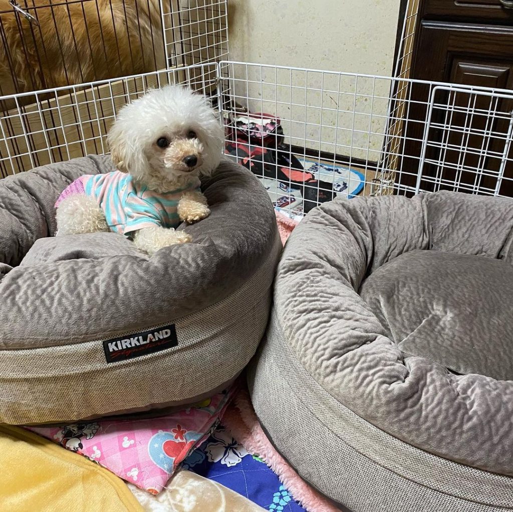 いつも、お家の中は、ゴールデンも一緒に寝れるベッドなので、ゴールデンがいれば、どのベッドでも寝るのですがね(笑)このベッド今、売ってなくて、同じメーカーの似た形を買ったらお気にめさず、ネットで探したら、買値が倍でした!