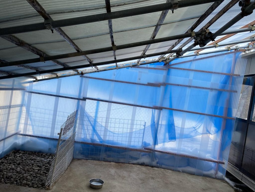 あたたかくなりました♪ 投稿日 2022年2月8日 更新日 2022年1月22日 著者 スーパーブギフトケンネル カテゴリー その他 屋根をかけたのは良かったのですが、間に合わせで作ったので、めちゃくちゃ雪が吹き込んできてしまう。パパと考えて、壁をつくり、防御!増設したプレハブは、チワワとプードル達の室内ドッグランに!電気工事が途中で、暖房がないので、野外、室内ドックランを温かくするためと、野外ドックラン凍結を溶かすため、ジェットヒーターを買いました^o^すご〜く温かいです^o^