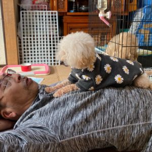 お留守番 投稿日 2022年5月31日 更新日 2022年6月9日 著者 スーパーブギフトケンネル カテゴリー お知らせ お留守番させられた、穂ちゃん!パパから離れません。 いつもより、多めに食べて(笑)爆睡しています(笑)トリミングしないと^o^